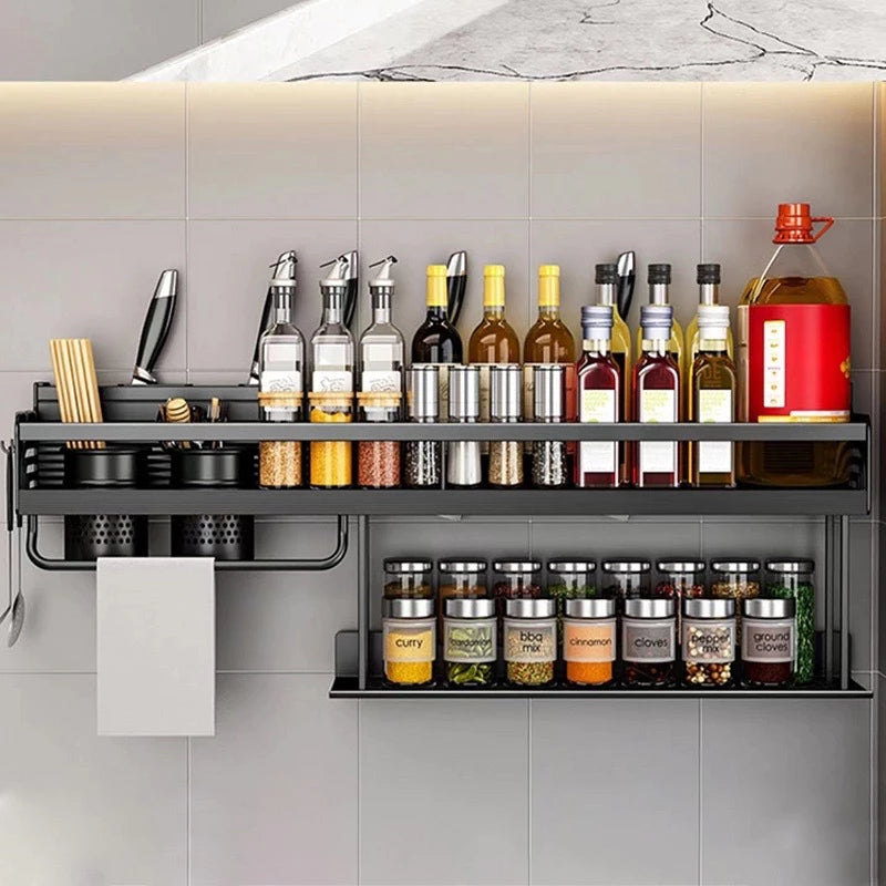 Organize sua cozinha com estilo e eficiência. Adquira o Suporte de Armazenamento Multifuncional em Alumínio agora e transforme o seu espaço!