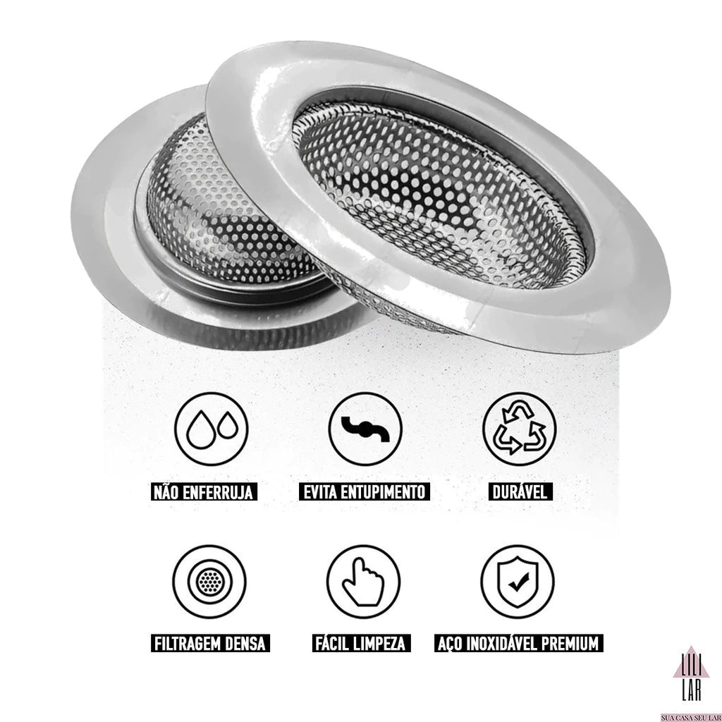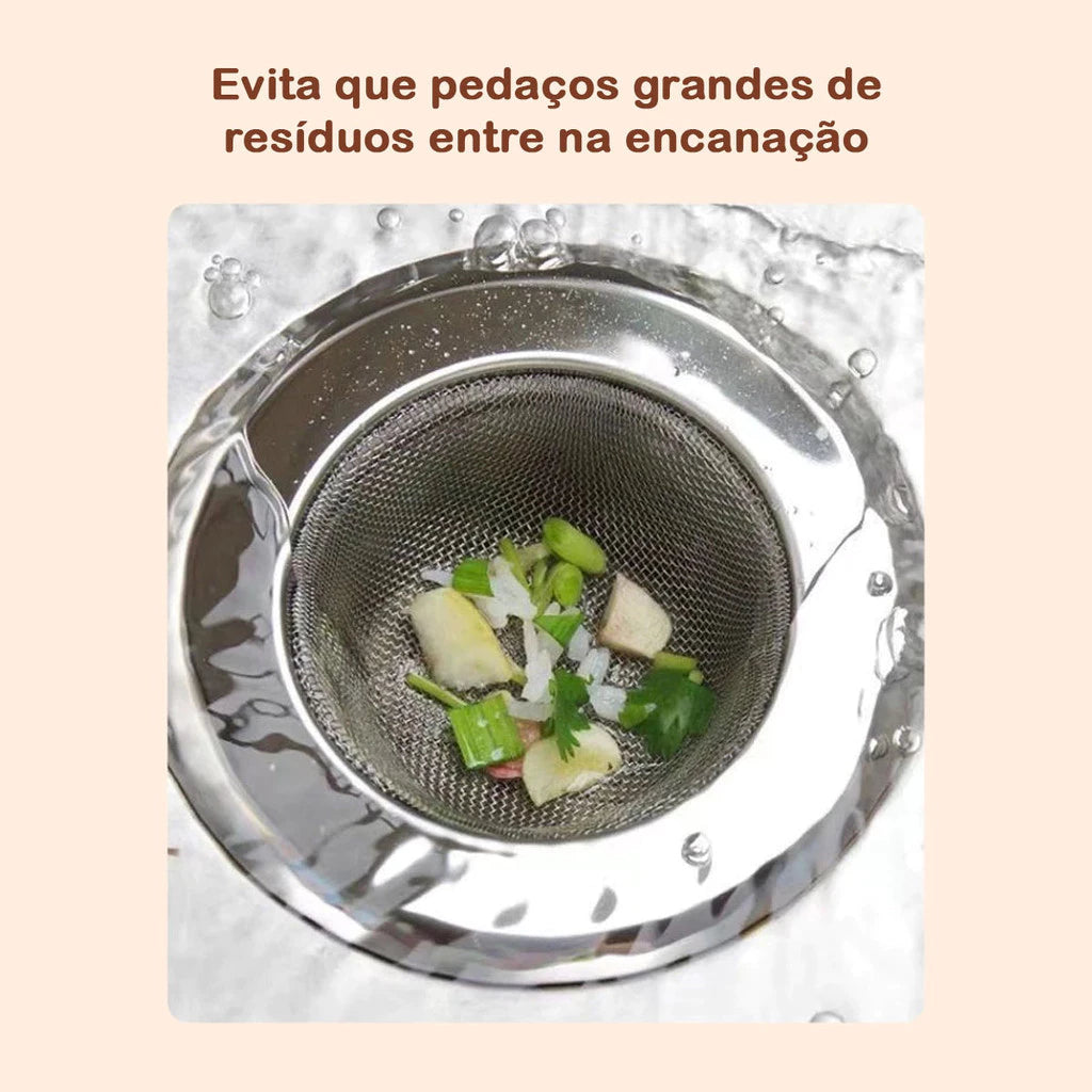 - Tela em Inox que retém resíduos e impede o entupimento do encanamento.