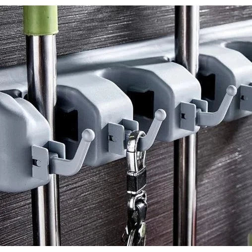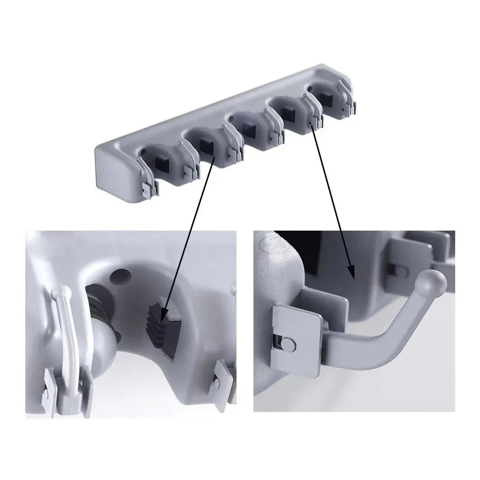 Com 5 ganchos, esse suporte oferece o espaço ideal para pendurar vassouras, rodos, chaves, sobrinhas e outros utensílios de forma prática e funcional, liberando espaço e eliminando a bagunça.