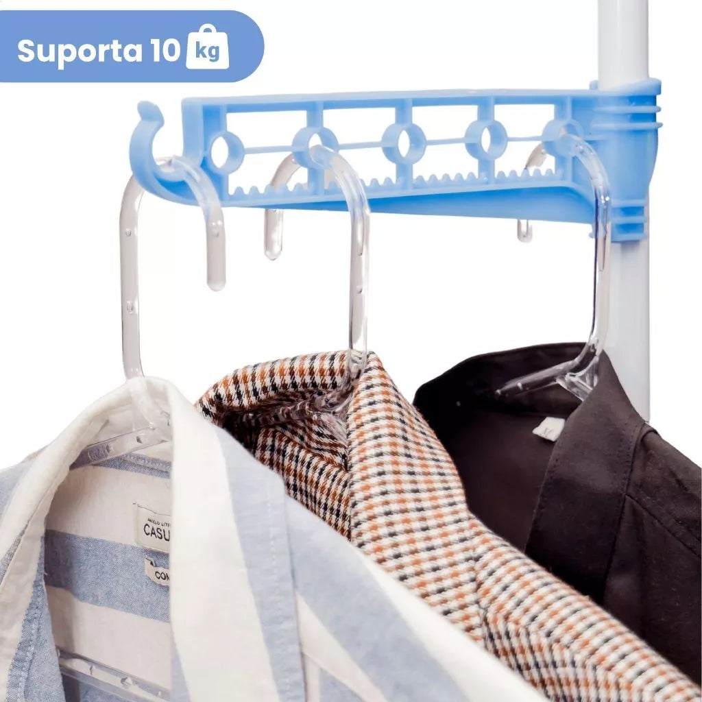 - 2 abas laterais que suportam até 10 cabides, aumentando a capacidade de secagem.